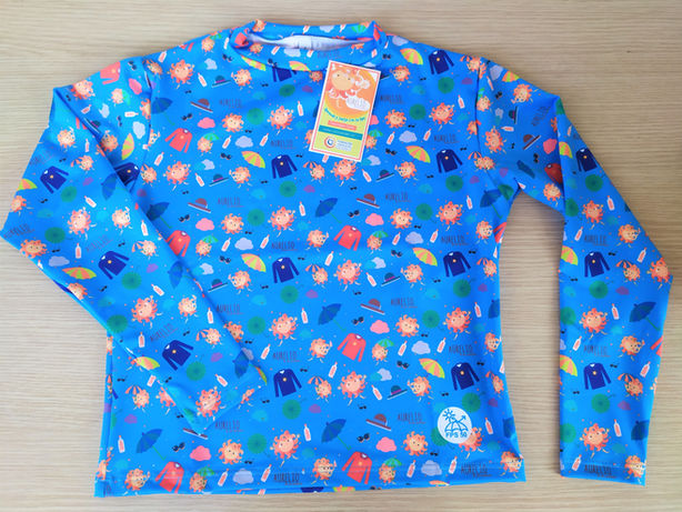 Aurelio sigue compartiendo con todos los niños el mensaje de la protección solar, lo hace en su cuento, en su block de actividades y con la aplicación digital. Ahora está presente en las camisetas con filtro UV que le permite a los niños, estar frescos y protegidos al mismo tiempo sin importar donde se encuentren.